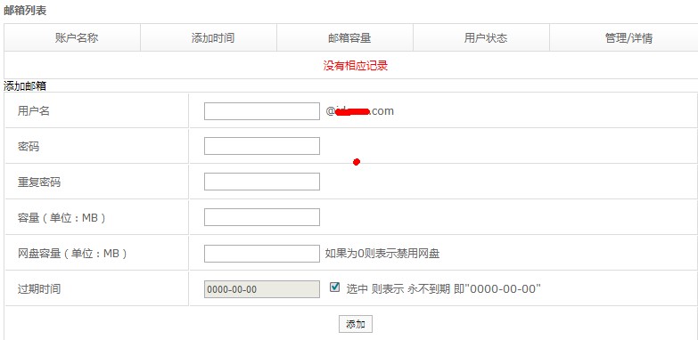 在邮局业务正式开通后,你可以在你的会员中心下管理的你邮局。刚开始,需要您新添加一个邮箱帐号,如图:
