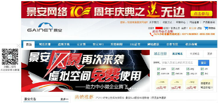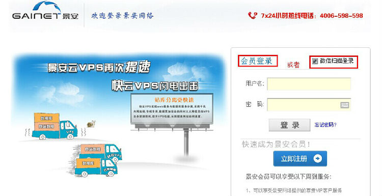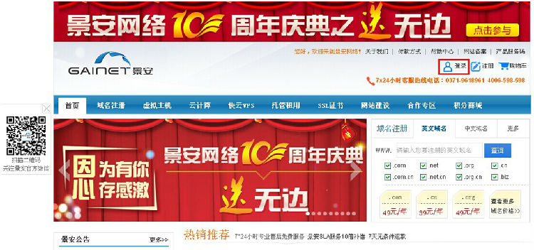 1. 登陆景安主站www.zzidc.com,点击右上角的登陆。