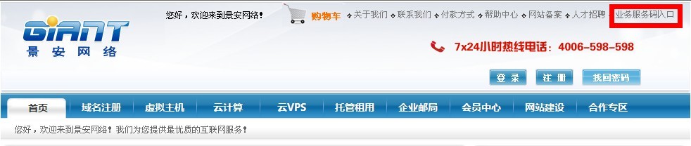 1、获得业务服务码和服务码口令以后,用户可以在www.zzidc.com上找到业务服务码入口