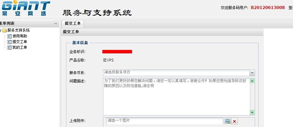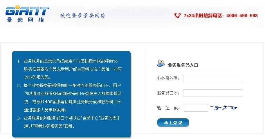 3 、在业务码服务系统页面,输入您个人的业务服务码和服务码口令,进行登录,跳入故障申报页面。