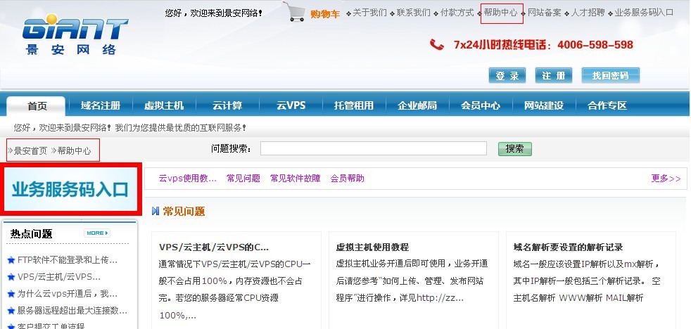 入口二:在www.zzidc.com页面左下角,景安服务入口。