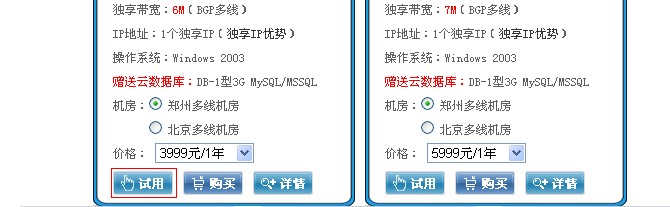 2、登陆会员,转到云计算所在的页面,选择您想要测试的快云VPS,点击申请试用;