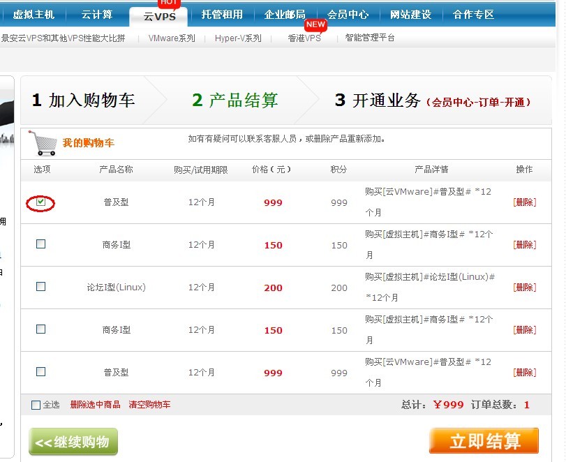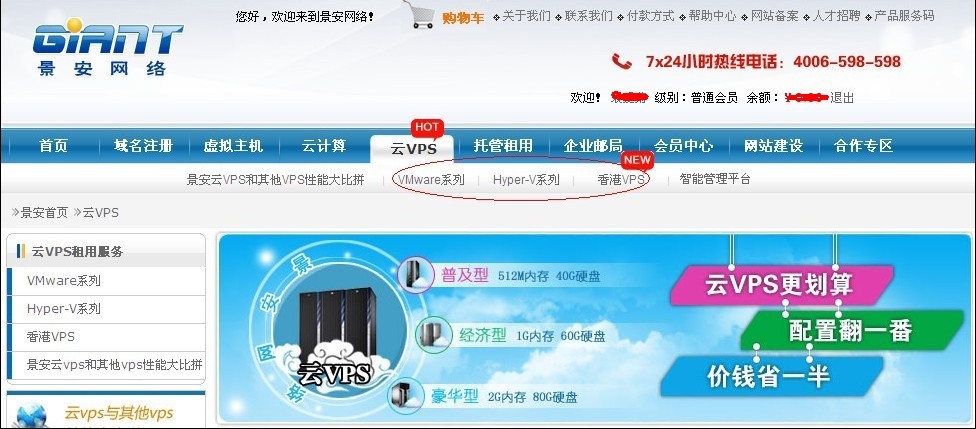1 登陆会员中心,点击云vps,选择您需要的主机系列。