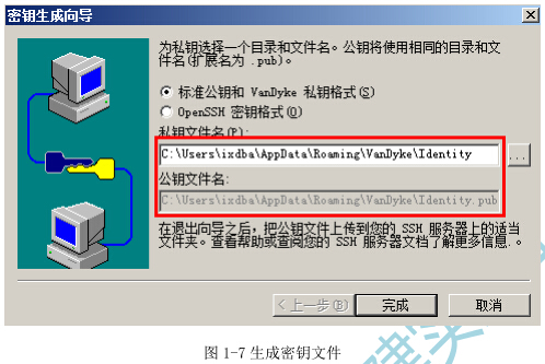 7)为生成的密钥选择一个文件名和存放的目录(可以自行修改或使用默认值) ,如图 1-7所示。