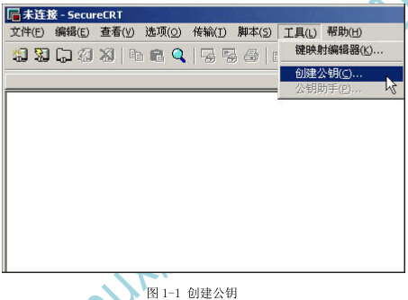 1)首先产生SSH2的密钥对,这里选择使用RSA 1024位加密,如图1-1所示。