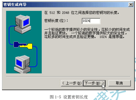 5)在密钥的长度(位)中,使用默认的1024位加密即可,如图1-5所示。