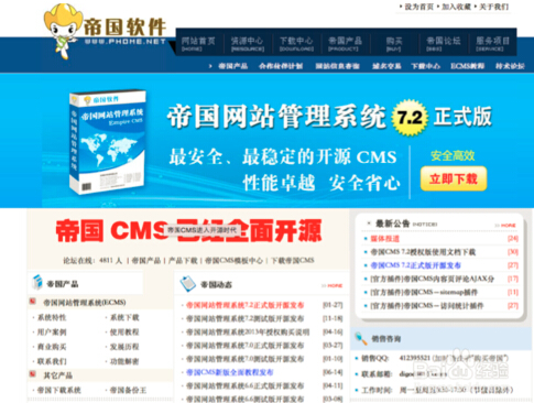 帝国的功能非常多,包括下载,flash,商城,图片,新闻,分类信息,电影系统,文章系统,友情链接,广告管理等,比如一些远程发布,刷新效率,类别管理,权限细分,万能的论坛接口,信息采集,附件管理等这些都是帝国特别的亮点.以前大家对帝国都是可望而不可及的,因为以前都是商业性质的,而现在它已经在网站上号称全部开源了。