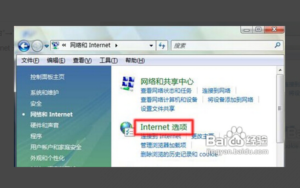 1.依次点击“开始”→“控制面板”→“网络和Internet”,点击“Internet选项”。