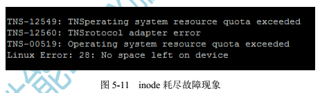 既然错误提示与磁盘空间有关,那就深入研究下关于磁盘空间的问题,在Linux系统中对磁盘空间的占用分为三个部分:第一是物理磁盘空间,第二个是inode节点所占用的磁盘空间,第三个是Linux用来存放信号量的空间,而平时接触较多的是物理磁盘空间,对第二个和第三个空间的问题就接触较少。既然不是物理磁盘空间的问题,接着检查是否是inode节点耗尽的问题,通过执行“df-i”查看系统可用的inode节点,如下图。
