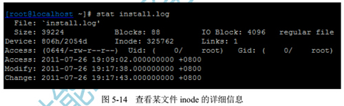 如果要查看这个文件更详细的inode信息,可以通过stat命令实现,如下图