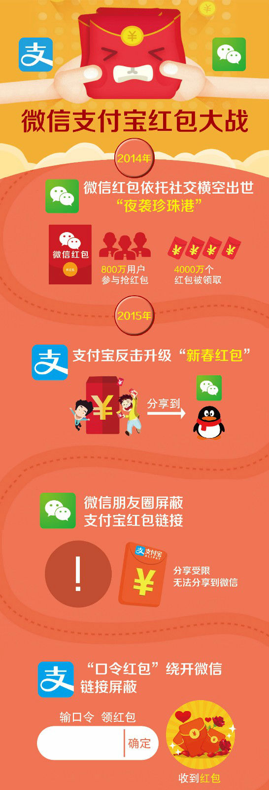 春节红包战,经过14、15年两轮攻势,在即将来的猴年春节,红包大战号角已提前吹响,看图吧
