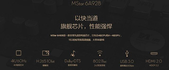 芯片是一部电视重要的一环,决定着电视的解码、运行速度等,小米电视用的是旗舰电视芯片MStar6A928。