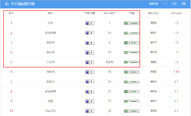 那么国内pr值高的网站都有哪些呢?我们不妨来看下:
