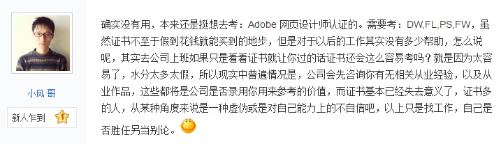 至于adobe认证用处大不大?这个才是大家最为关心的问题吧?我们来看下网友们是如何说的?