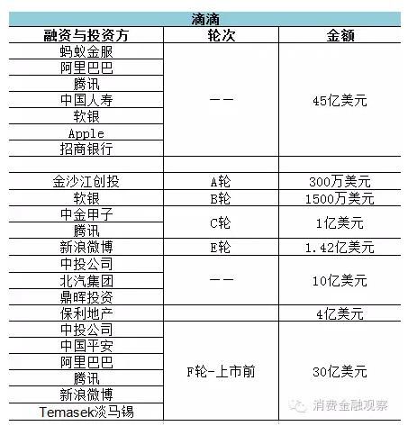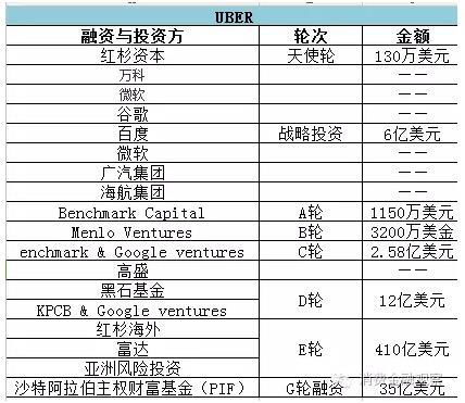 备注:UBER中国的投资方包括中信证券、中国太平、广汽集团、海航集团等