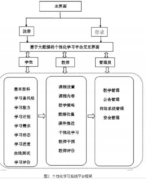 根据上述基于数据的个性化学习的功能,为了让这些功能一目了然地展现出来,笔者构建的平台框架如图2所示。