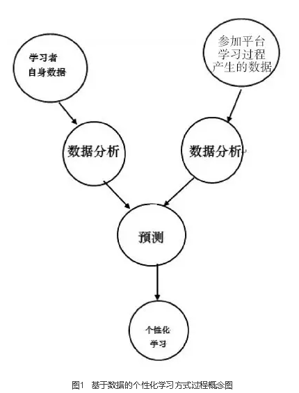 基于大数据的个性化学习是把学生自己的学习风格和学习能力进行可视化分析,再与学习者参加平台学习过程产生的利于促进教学效果的数据结合起来,这些数据是根据学习者的个体差异产生出来的,可以预测设置适应学习者个性的课程。