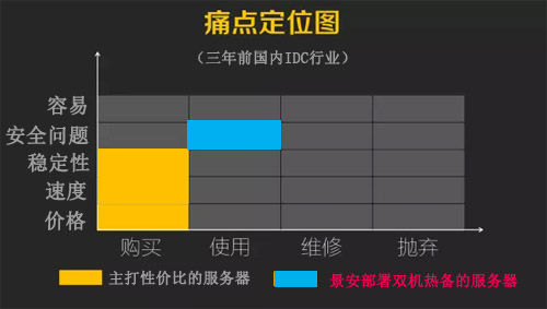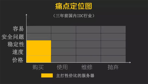 比如,三年前在国内主打性价比服务器,在痛点定位图上是这样的: