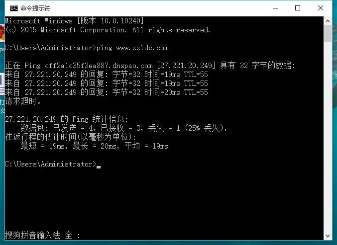 如果网络不正常,则ping命令会立即关闭,不显示以上信息,或显示为网络不可用。关于ping命令的使用请参考: