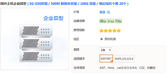 这一款国内asp虚拟主机价格仅99元/年,但配置确不打折,非常给力,比较适合个人网站或者简单企业网站。对于那些资金有限的朋友来说是一个非常不错的选择。