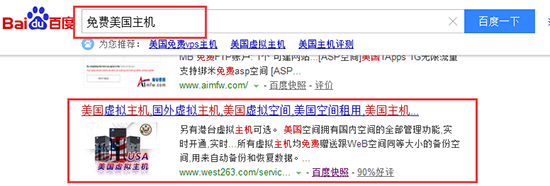 起初,小编也是相信会有免费美国主机的,特意去百度了一下,百度还真给了我结果: