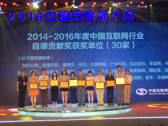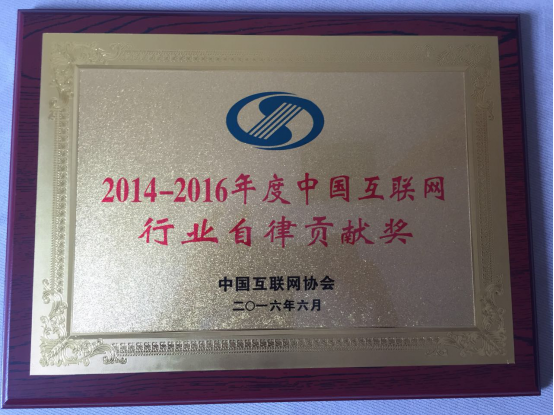 景安网络荣获2014—2016年度中国互联网行业自律贡献奖