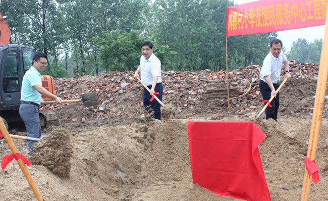 陈震鹏与各位领导一起挥锹为刘寨村小学培土奠基