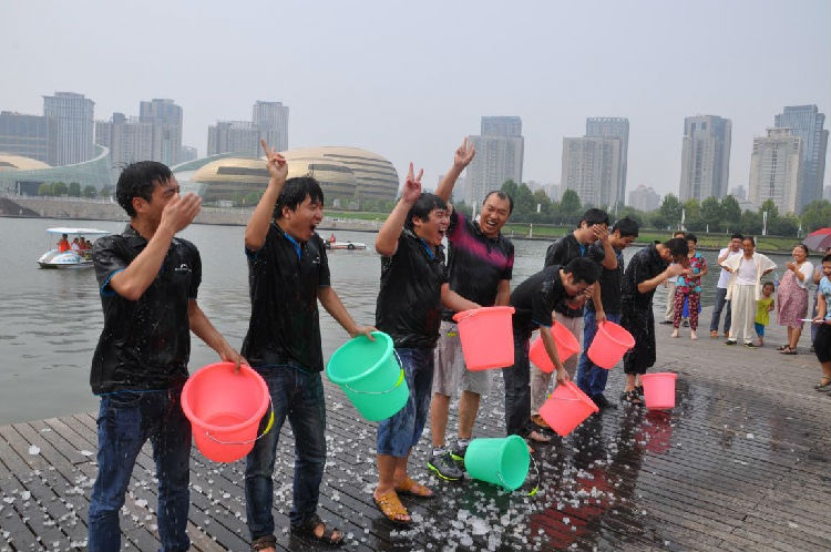 如意湖地取水迎接“冰桶挑战”